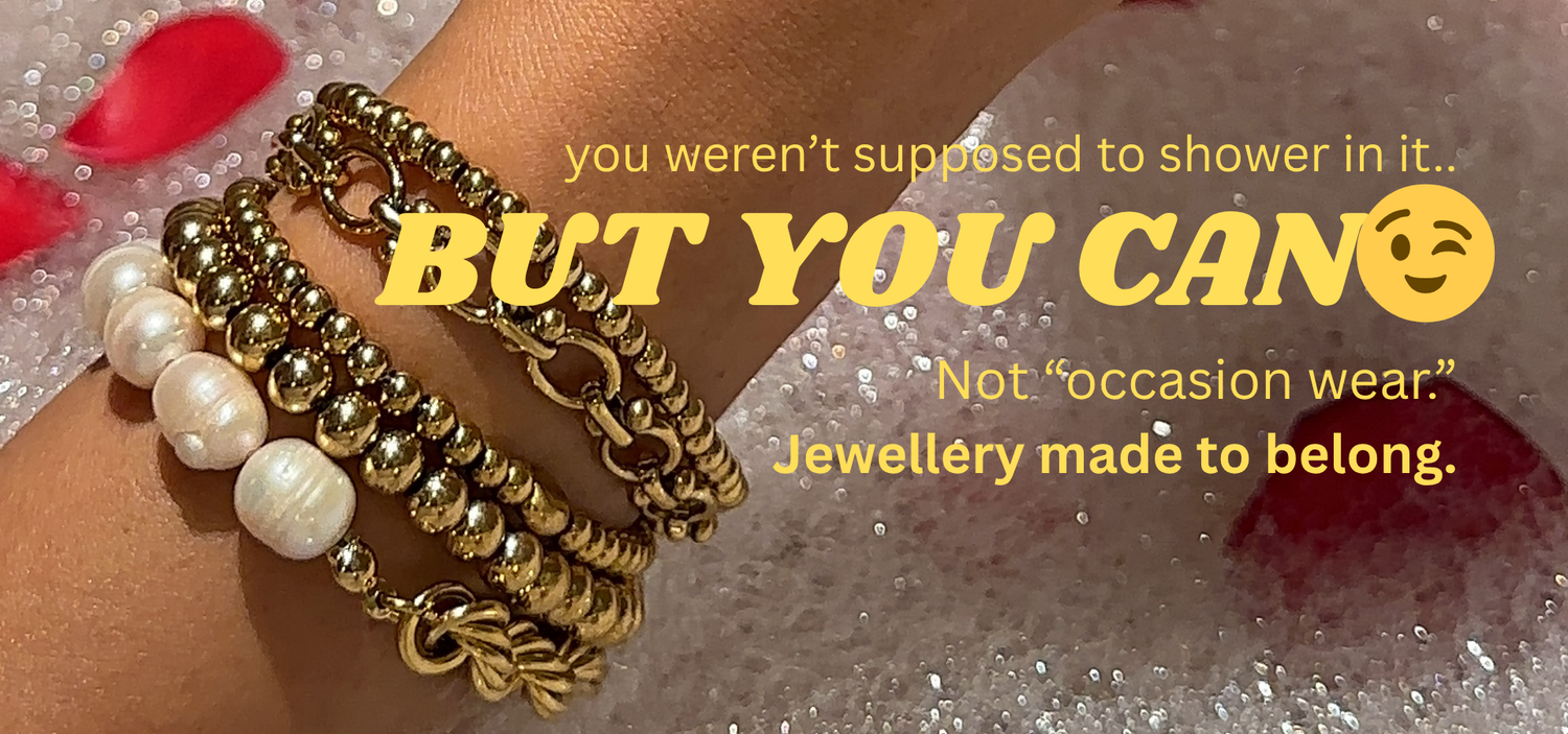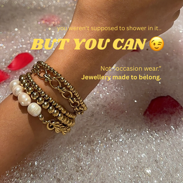 Our jewellery is waterproof, skin friendly and anti tarnish. The Colour will last for a long time if taken care of!